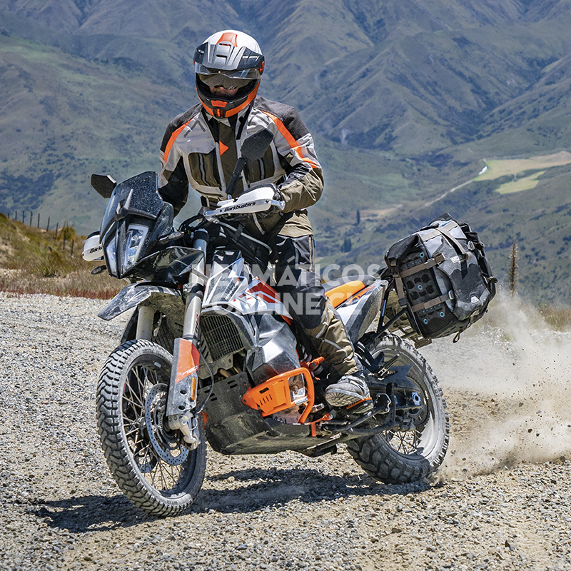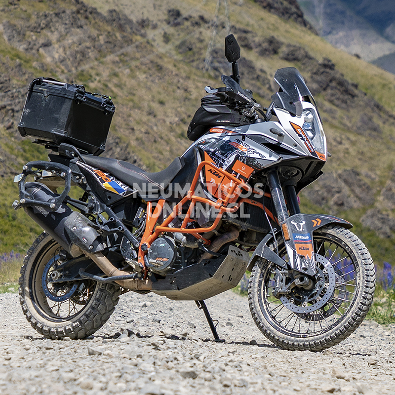 El neumático E-07 (ENDURO TRAIL) de Mitas es muy querido por los pilotos de Big Trail. Fabricado para rendir en asfalto, ripio o tierra, garantiza excelente agarre y estabilidad en condiciones climáticas secas, húmedas y mojadas. El diseño de grandes bloques proporciona el espacio necesario para desplazar agua, barro y arena sin comprometer la tracción del neumático. Recomendado para motos Adventure Touring de doble propósito. E-07 (ENDURO TRAIL) es el neumático original (OE) de la KTM 690 ENDURO R 2019.